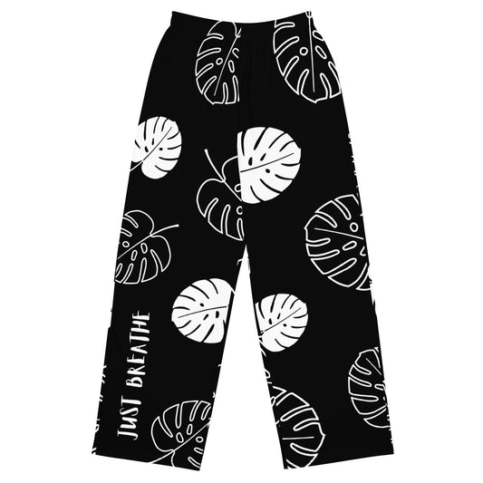 Just Breathe All-over Monstera Print Wide-leg Pants